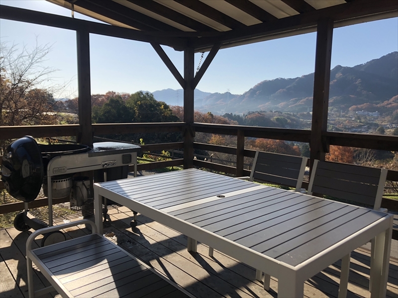 広々とした約17畳の屋外ダイニングスペースは、相模原の豊かな自然を一望できる抜群の眺望。